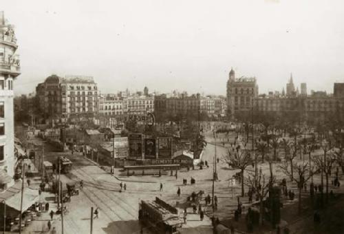 Yo no sé si esto es un daguerrotipo, lo que está claro es que ya estamos en el siglo XX, porque el Café Colon ya habia emprendido su primera remodelación pasando de Café-Restaurant a Hotel.Plaça Catalunya principios de siglo XX, , subiendo al Paseo de Gracia, y el Hotel Colon a la izq.