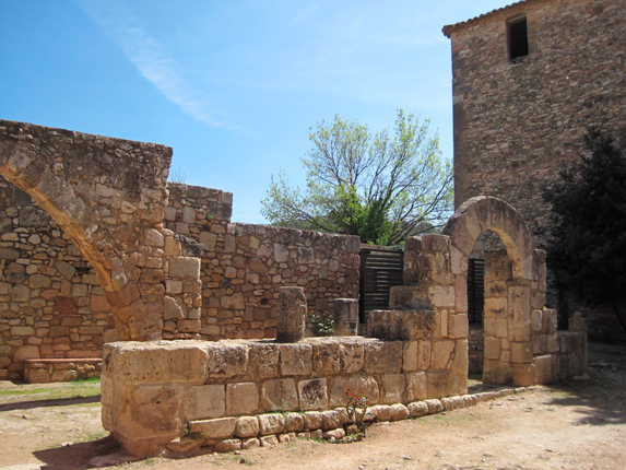Conjunto de restos constituidos por diferentes arcos de piedra y por testimonios en alzado de antiguas paredes que correspondían, probablemente, a las dependencias monásticas necesarias para establecer el asentamiento de los primeros monjes procedentes de Valldaura. Entre los restos se encuentra un monolito conmemorativo dedicado a fray Guillem Mestres, monje de Santes Creus nombrado, después de la exclaustración de 1835, vicario de la parroquia de Santa Llúcia. El fraile se convirtió en custodio y defensor de la integridad del monumento y se le recuerda como el primer restaurador del monasterio.